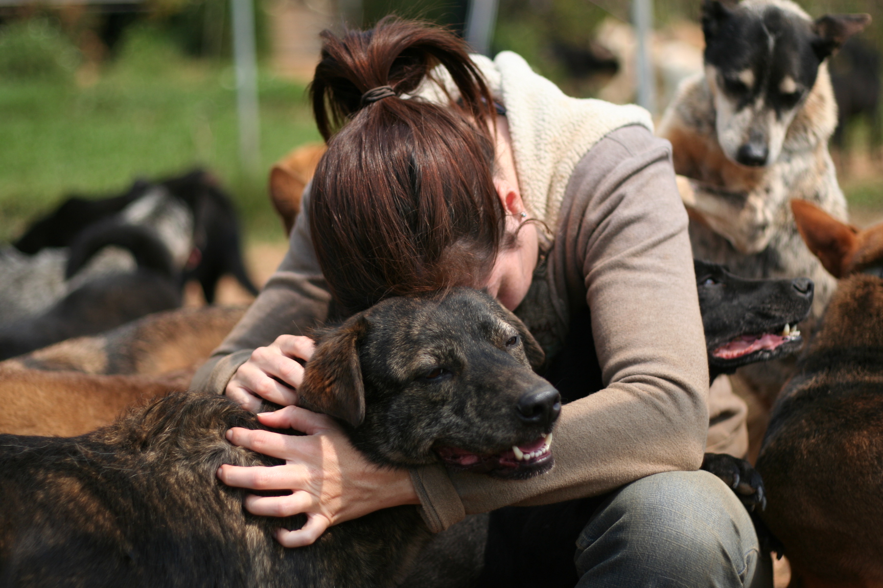 I spend much of my time in the playground, and the dogs run free and enjoy being out of their cages. Once all the dogs are out, I’m surrounded by nearly 300 of them. I’m comfortable around them, but even if I wasn’t, there is nothing to fear. None of the dogs growl at me; one howls at me in short bursts, but it’s such a funny sound that I laugh and talk to him every time he does it.