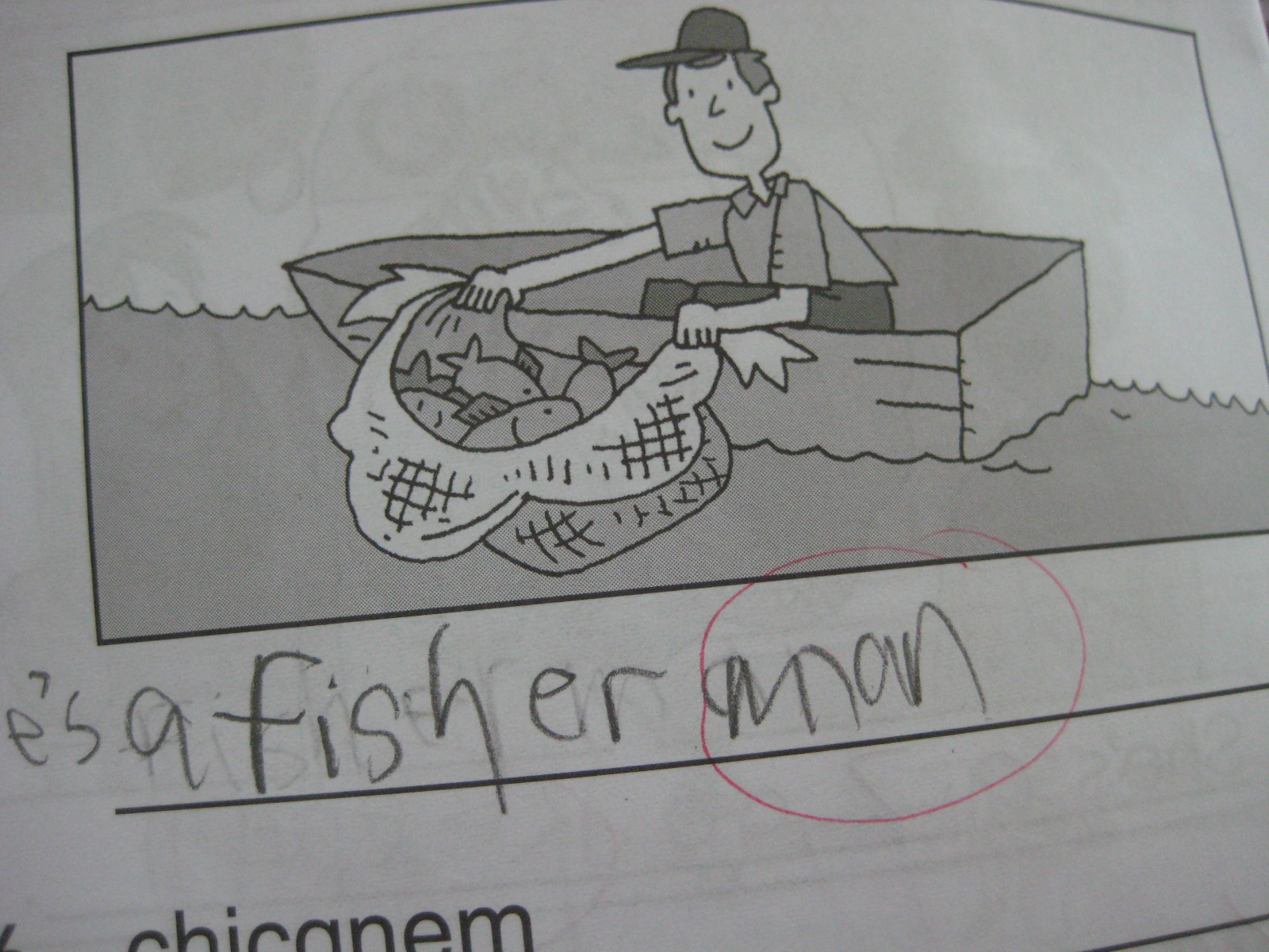 She looks at her workbook, which is laying open on my desk. I’m checking her finished work and have found a spelling error. Her brow furrowed, she looks at me.