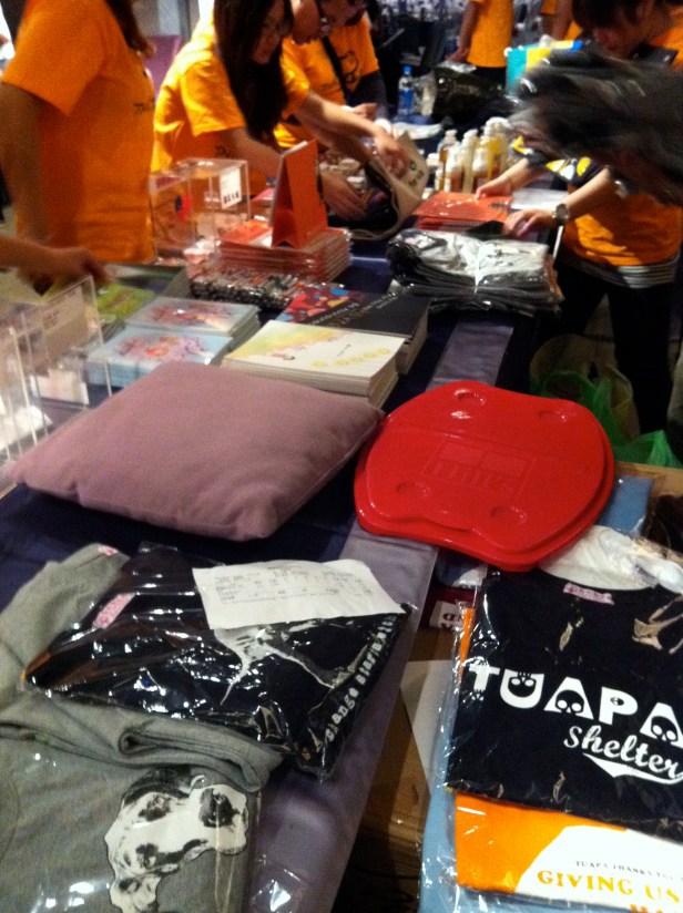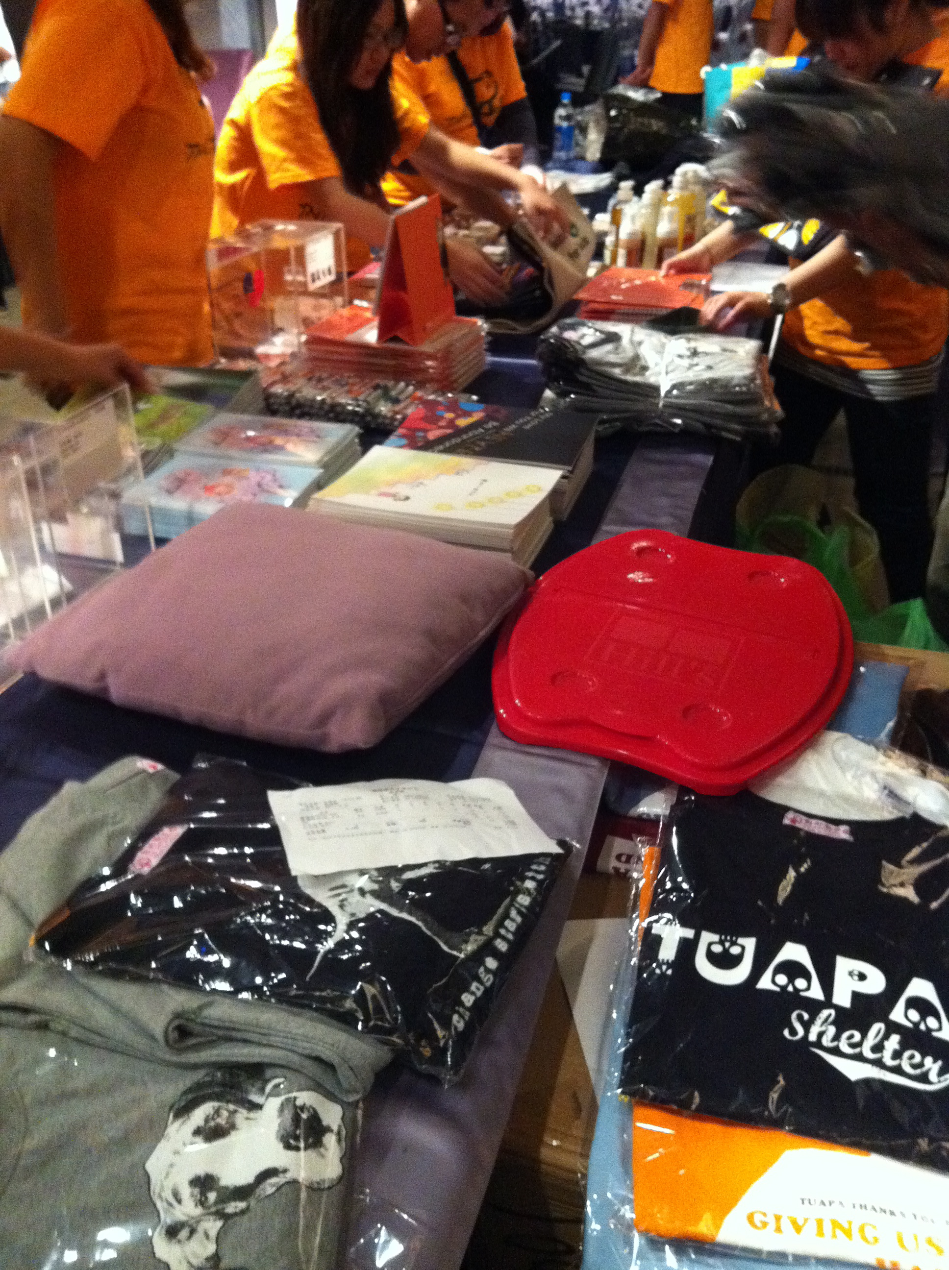 I watched the volunteers set up a merchandise table.