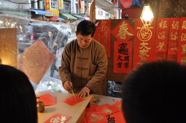 Before heading back to Hsinchu, we passed a table where an older man and his wife were selling personalized paintings for the new year.