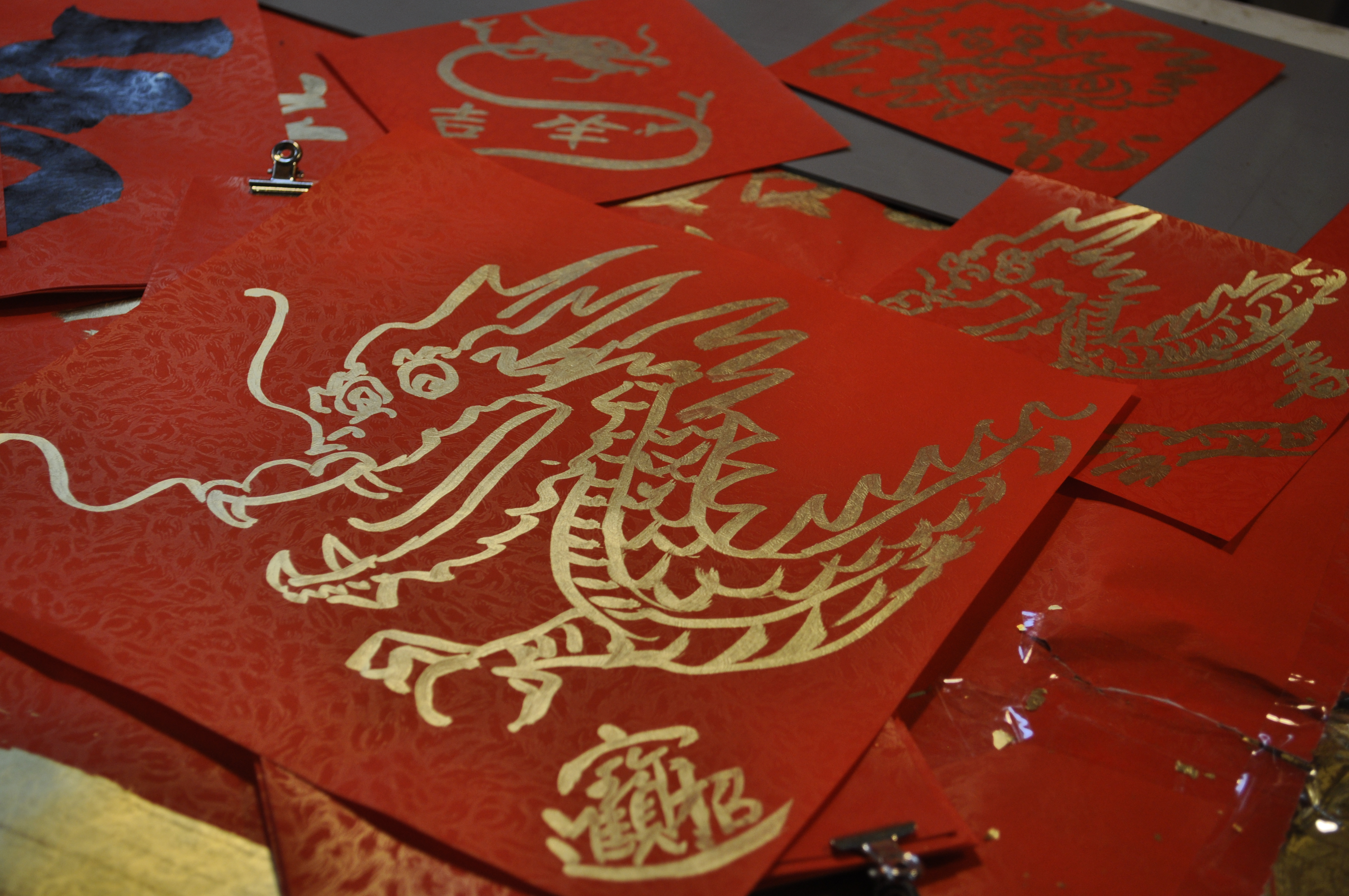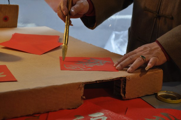 After learning what you wanted, he dipped his large calligraphy brush into gold paint and went to work.