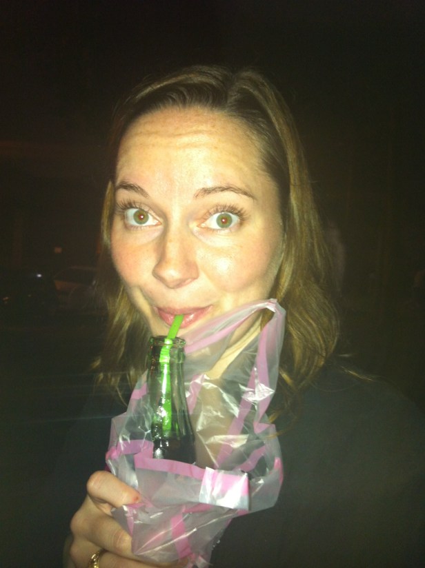 No money for us. We left, but not before I got a picture of me drinking out of another plastic bag.