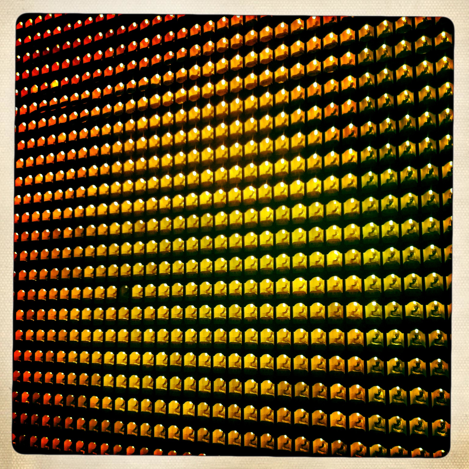 Each light has the name of an individual who donated money to the temple etched into the bottom. There are generally thousands of these lights in every temple.