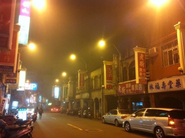 An unusual scene: a downtown Hsinchu street almost deserted.