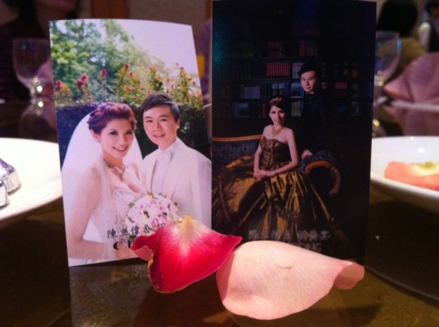 Each guest brings a red envelope full of a certain amount of cash. There aren’t wrapped gifts, just red envelopes. Depending on how well you know the couple, you give anywhere from $35 to over $100. This helps offset the cost of the reception and, if money is left over, pay for the honeymoon.