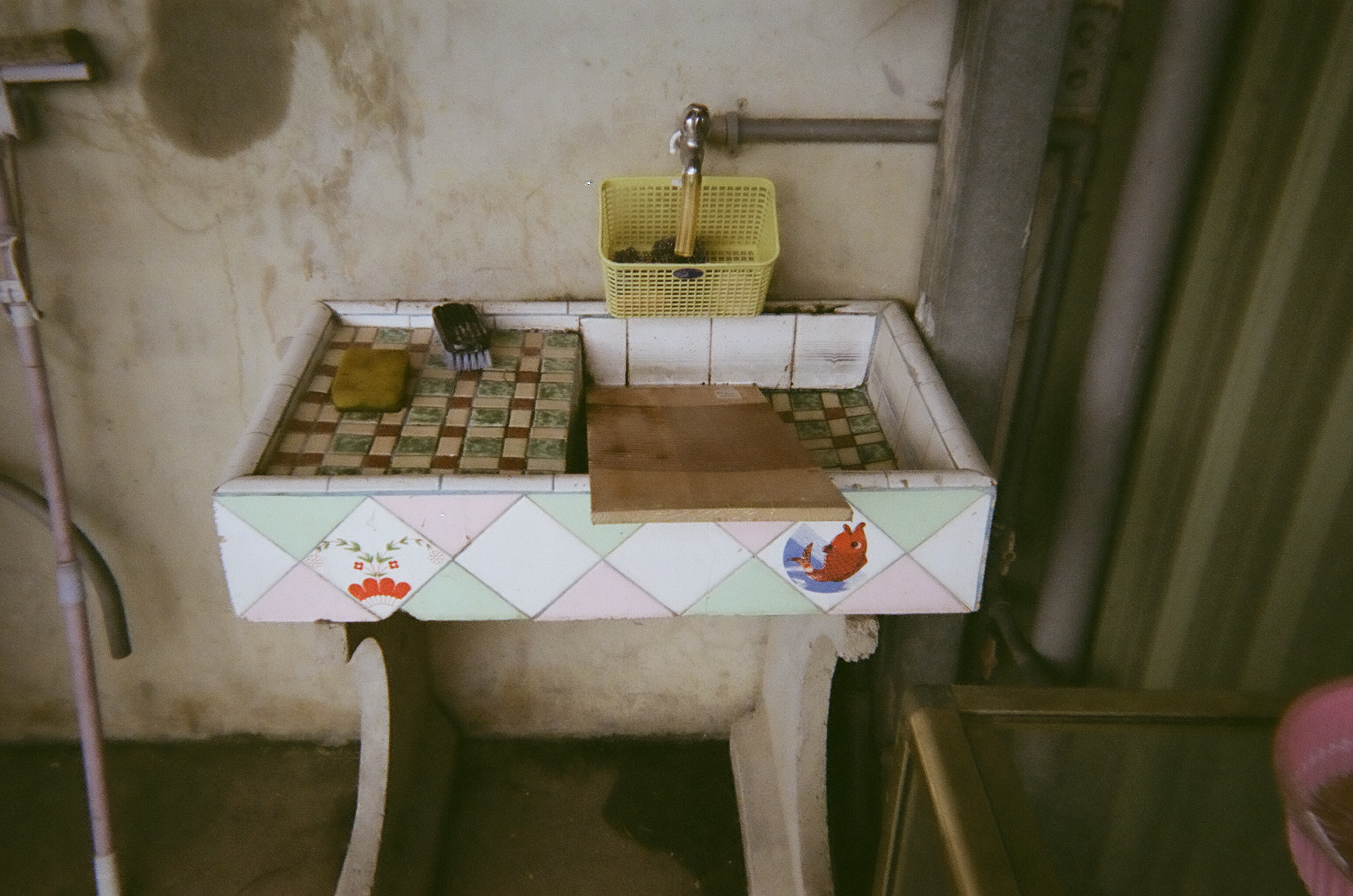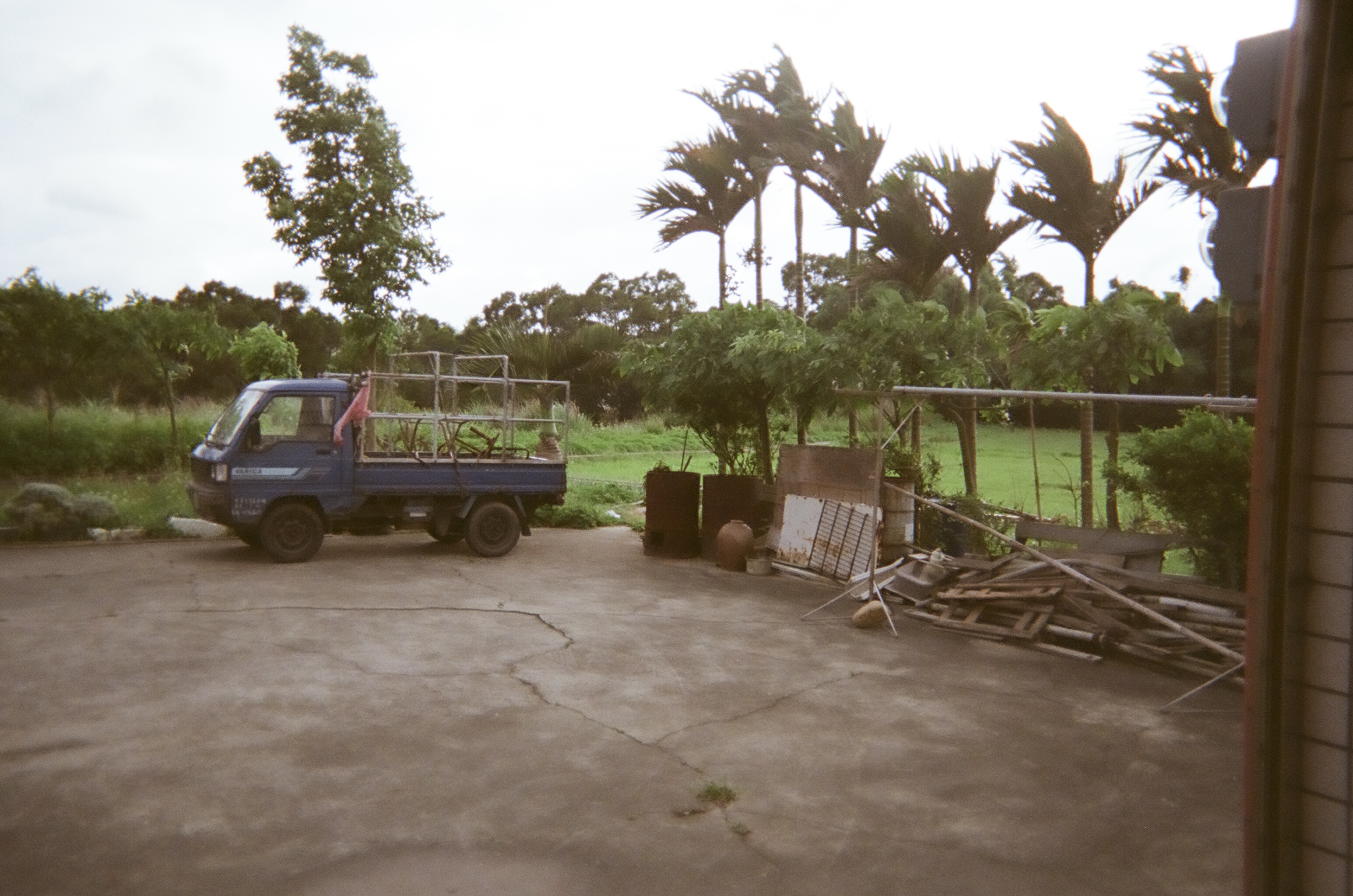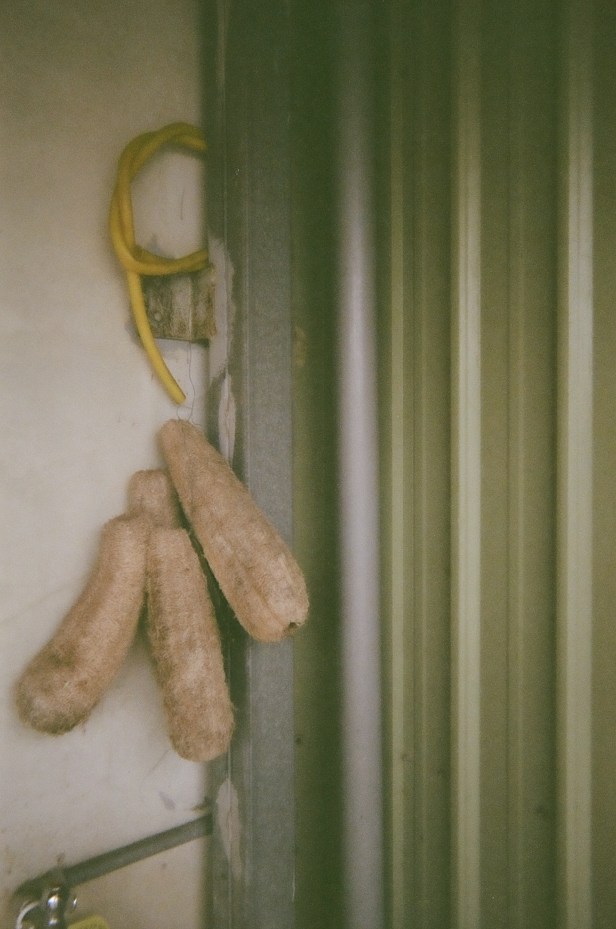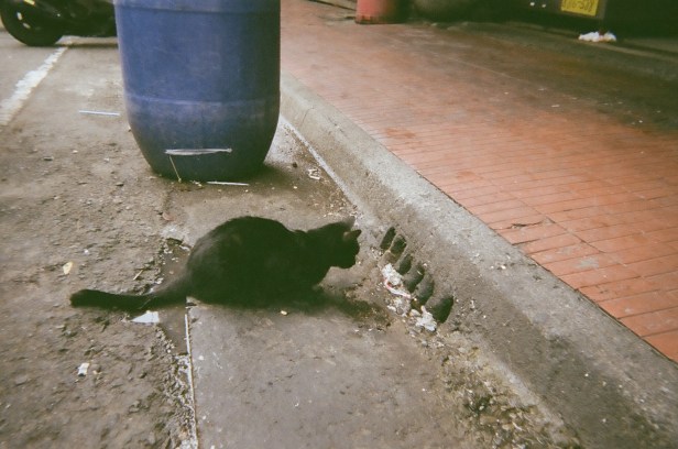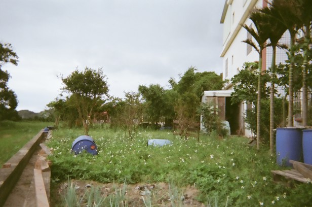 A rat ran into the sewer, and now a stray cat is waiting for it to come out.Some days at work we all order drinks from a local drink shop. This is Doris’s bubble milk tea. My new favorite is caramel milk tea.Doris took this to show how easy it is to live in Taiwan. Almost everything is convenient. Need a quick lunch? Family Mart, 7 Eleven, Hi Life, or OK Mart is right around the corner.Parked scooters outside a residential building. The flowers are in full bloom right now.Sitting outside a small, neighborhood temple. Temples are relaxed, communal areas.Kids playing hide and seek. Doris: “They called me paparazzi!”A very small plot of corn and a vegetable gardenNarrow, blind corners are a Taiwan stapleDoris took this picture because of all the exposed power lines. “Other countries try to hide them, but in Taiwan, they’re really obvious.” I also love that this showcases the blind spot mirrors that are all over the place.No matter the size of the temple, the roof will have some kind of elaborate decoration.At a local theaterRice fields in Taiwan are as common as corn fields in the US.Inside an open-air breakfast shopThis cartoon character, Tatung, is famous in Taiwan. Apparently they don’t make these porcelain figurines anymore, and the day after Doris took this picture, this one broke.Before washers, clothes were hand-washed using wooden boards like the one in this outdoor sinkA “loofah” is an edible vegetable that looks a lot like a cucumber. After it dries out… or it’s baked… it’s ready to use to scrub dishes or skin clean. Yeah, so LOOFAH = VEGETABLE. Who knew? Apparently every Taiwanese person.Old Japanese coins and makeup tins in her grandfather’s bedroomBetel nut trees, which I initially mistook for palm trees, behind a clothes-drying rackAn unkempt field, once a vegetable gardenA field near Doris’s grandfather’s house. There were once more trees, but they were cleared.The two red tins hold tea leaves.Doris’s grandfather’s work truck. He puts up the roadside signs and announcements around Miaoli.These leaves are cooked, then wrapped around Taiwan’s famous rice dumplings.Rice paddies with new and older houses built next to and on top of the fieldsA pedestrian bridge in MiaoliTwo blind men practicing using their canes near the pedestrian bridgeHuge lily pads, except not. Doris told me they were something else, but I don’t know what they are.