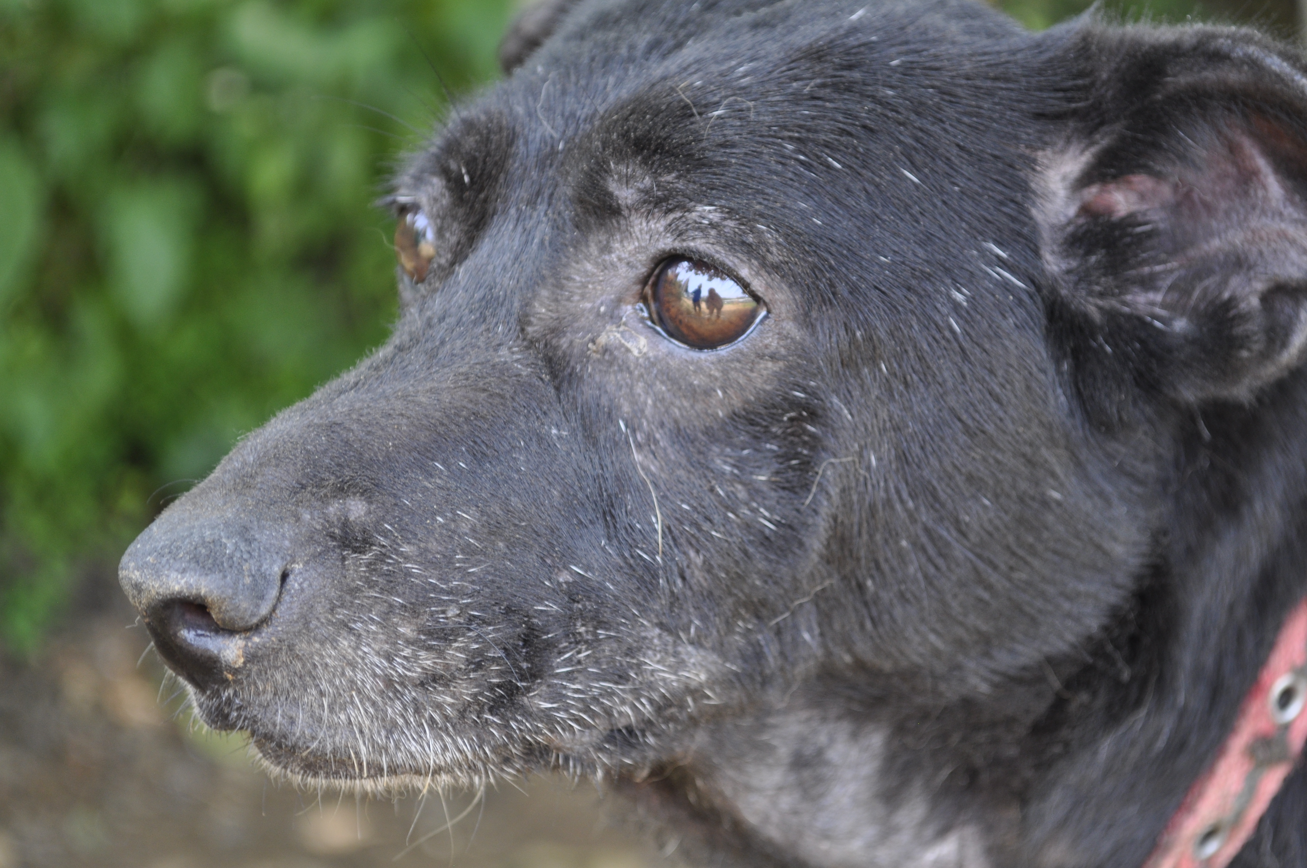 While we were in Taichung, we volunteered at the no-kill dog shelter I used to go to. I didn’t like this picture at first because I thought it was slightly out of focus, but then I realized the focus was on the reflection in his eyes: the volunteers. I LOVE that.