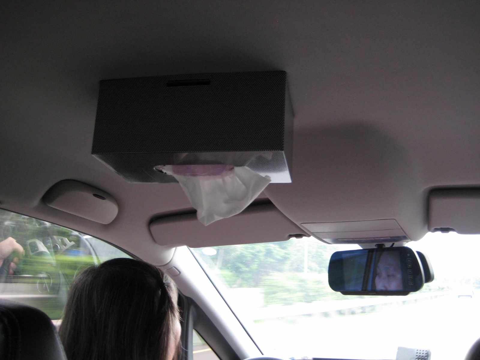 Linda, the mom of two of my former students, picked Sabrina and me up from the airport. We both liked the box of tissues stuck to the ceiling of the car.