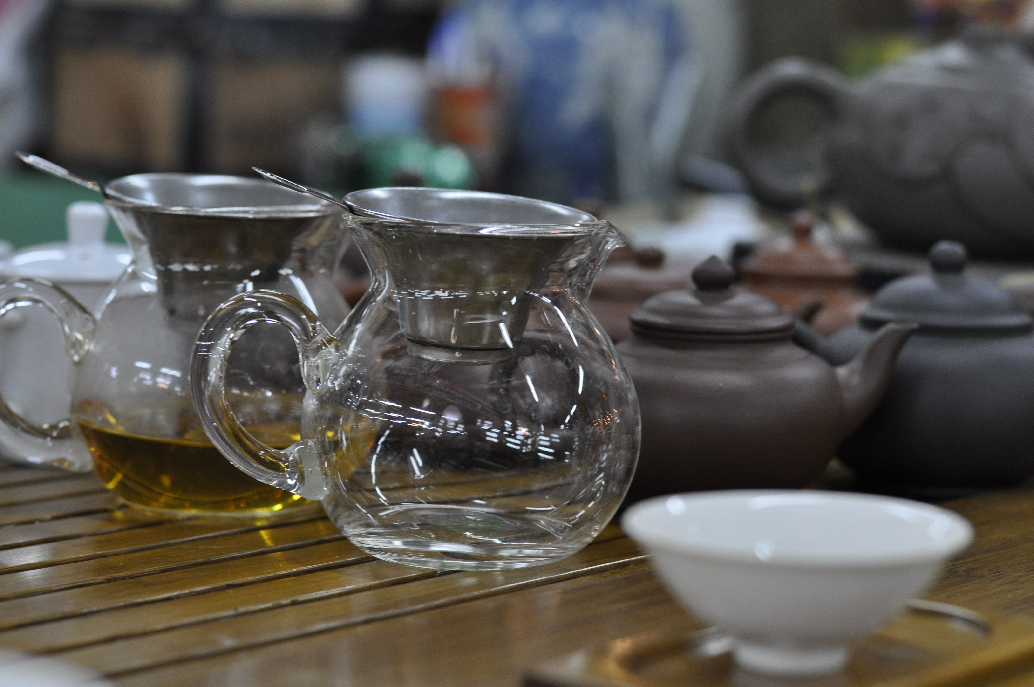 We stopped at one stall to buy some tea, and the vendor prepared samples the old fashioned way.