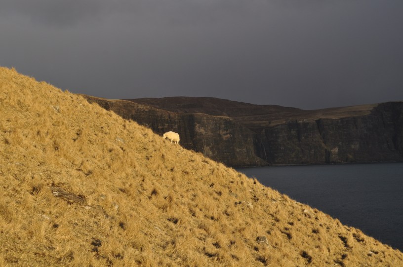 Going to Scotland at the end of winter meant the landscapes looked less like the postcards and screensavers everyone’s seen. The colors of the land, and the sky at times, were muted, but the clear sky and water were brilliant. Rainclouds were dollops of whipped cream over water and quieting gray blankets over land.