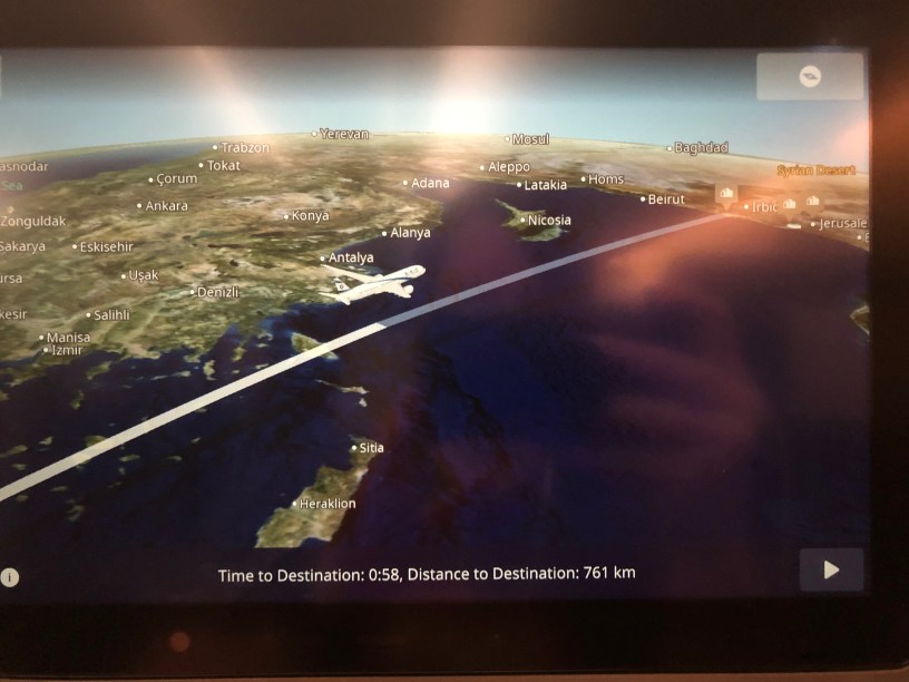 I watched the security video in Hebrew and English. We took off, and I tried napping. I tried watching a movie. I listened to a long podcast. I was thirsty — so thirsty — but didn’t have enough water. I ate a meal. But my anxiety was quietly making me uneasy. I was fidgeting, I couldn’t concentrate. I realized that my adrenaline was still going from the gate ordeal, and that it wouldn’t go away unless I made it.