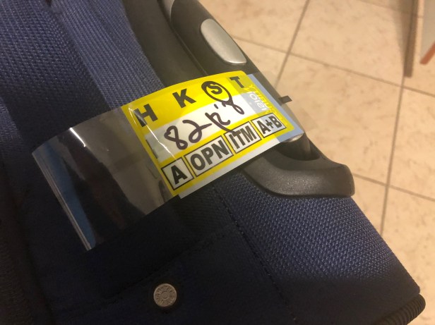 The last man to talk to me led me and another potential passenger back upstairs to the main concourse. He had us wait against a wall next to a few other people, like we were in line. He disappeared, came back. Disappeared, came back. Handed me my passport with a security sticker glaring up from my information page. Looped security stickers around my suitcase and purse strap. And disappeared.